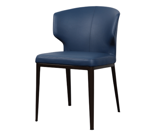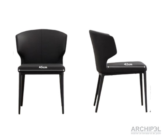en: PU dining chair xk1043. Seat and backrest filled with injection foam, brown powder-coated steel leg frame. en: PU dining chair xk1043 in injection foam with brown leg (steel powder coated).