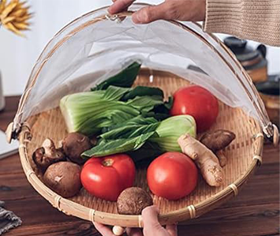 lot de 3 plateaux bambou rond avec filet dia.25-30-35cm – naturel