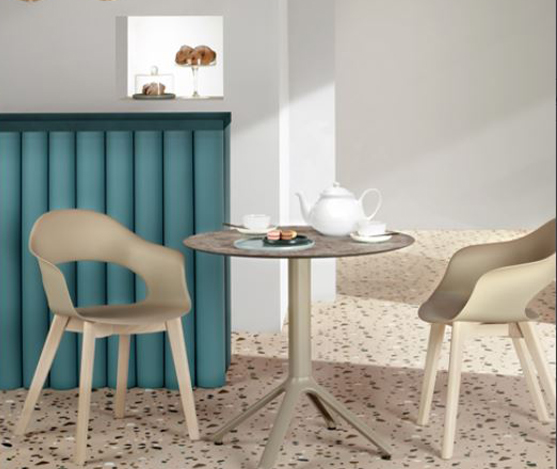 fauteuil lady coque en polytechnomère anthracite sur 4 pieds en bois