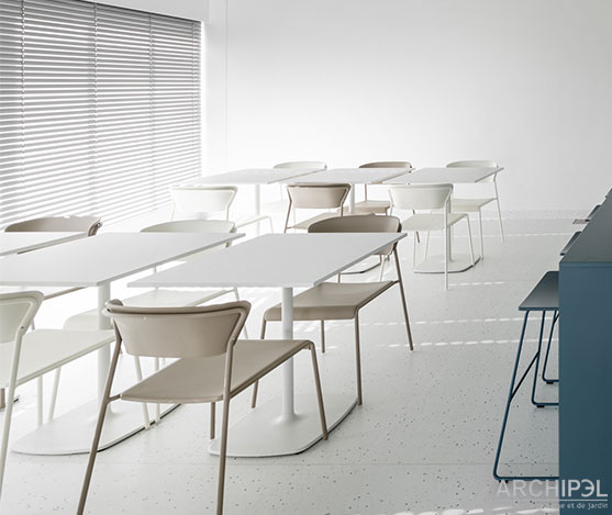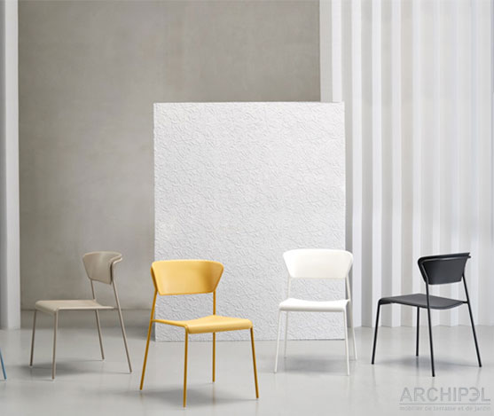 Chaise « LISA » avec structure en acier tubulaire Ø16 mm peint, assise et dossier entièrement en technopolymère. Des formes douces qui transmettent une agréable sensation de richesse et de solidité ; la qualité tactile dans la finition des surfaces et le choix de couleurs contemporaines font de la chaise et du tabouret de bar des habitués des environnements contracté les plus en vogue.