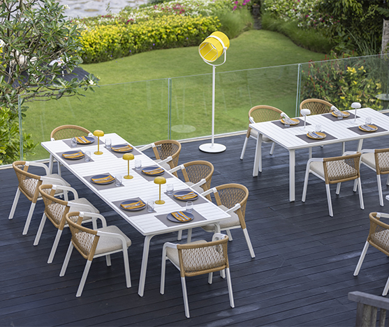 fauteuil amber, structure blanche, corde blanche chaude de 3,5 mm et coussin d’assise (ivoire bondi)