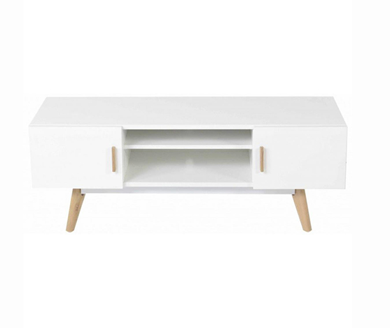[:fr]Meuble tv blanc avec pieds en bois naturel[:en]White TV stand with natural wood legs.[:]