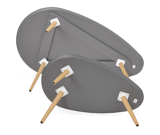 Jeu de deux tables basses gris pieds en bois.