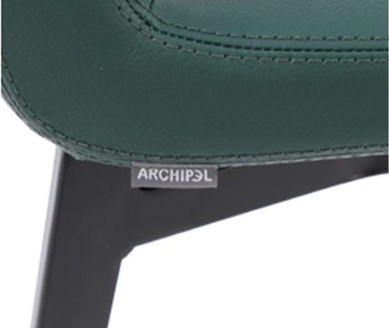 chaise en simili cuir vert. mousse injectée sur pieds en métal noirs