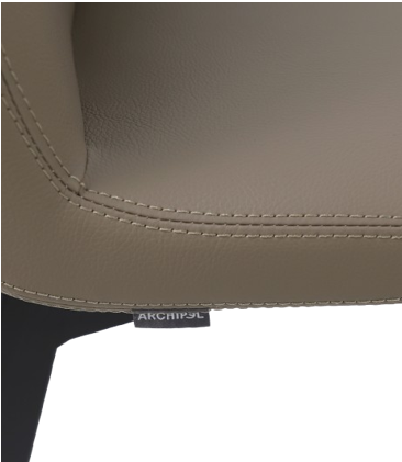 chaise en simili cuir gris. mousse injectée sur pieds en métal noirs