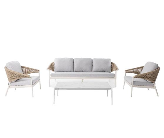 fauteuil celia en aluminium et rope avec coussin et oreillette couleur ivoire