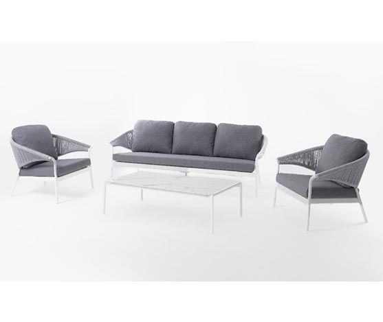 fauteuil celia en aluminium et rope avec coussin et oreillette couleur blanc