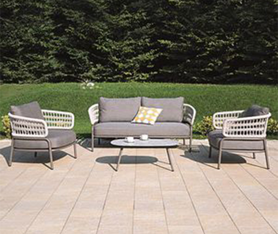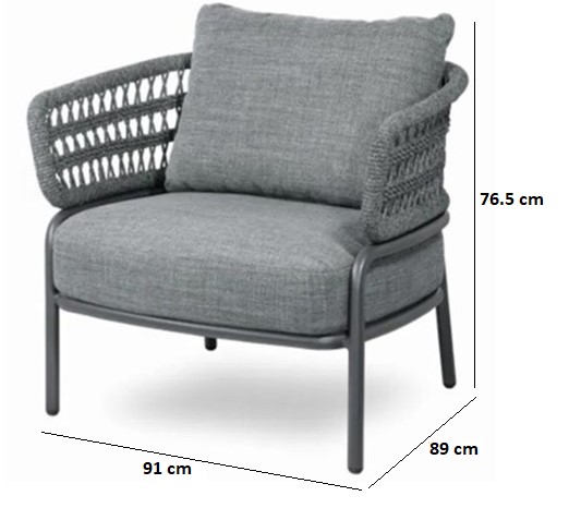 fauteuil ibiza structure aluminium anthracite avec rope pvc gris foncé et coussins fontelina gris