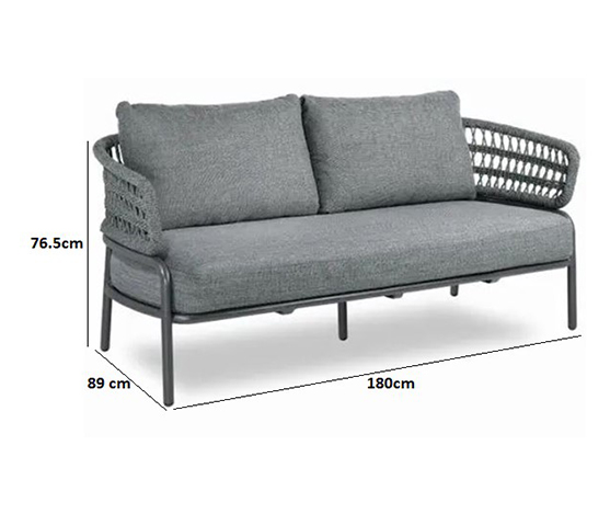 canapé 2pl ibiza structure alu anthracite avec rope gris foncé et coussins fontelina gris