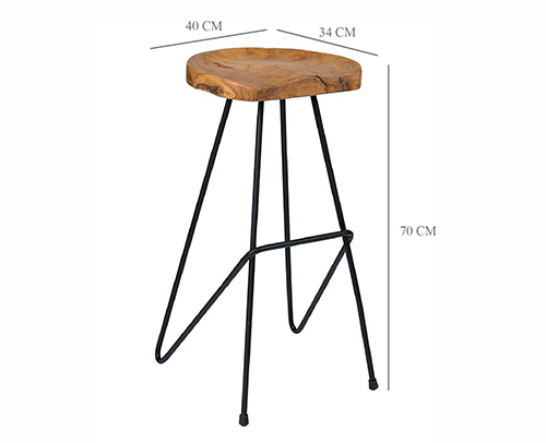 [:fr]Tabouret en teck naturel pied en metal noir[:en]Stool with natural teak seat, black metal legs.[:]