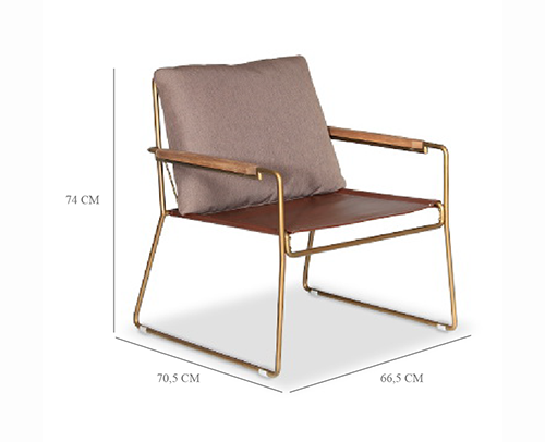 Fauteuil en cuir marron accoudoirs en Teck rustique structure métal gold galvanisée