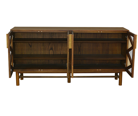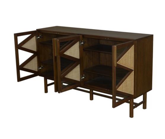 buffet alep (180cm avec 4 portes) en bois, finition coffee – rotin naturel