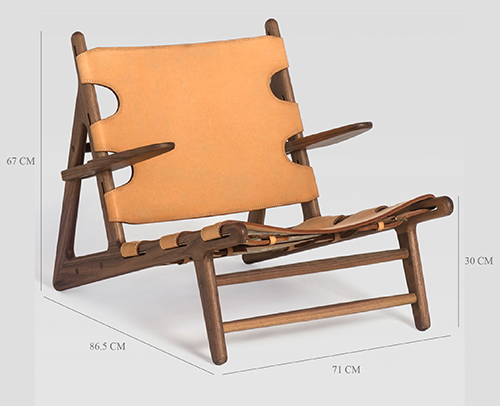 Fauteuil en bois massif noyer assise et dossier en cuir