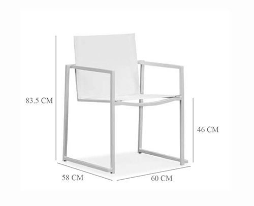 Chaise avec accoudoirs armature alu tissu batyline white.