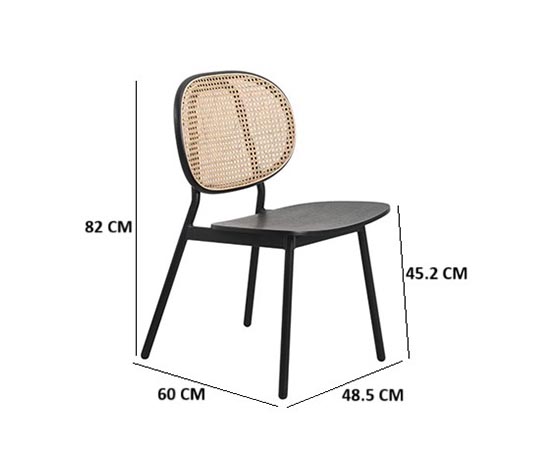 chaise à repas dossier en rotin avec assise en bois et pied en métal couleur verte
