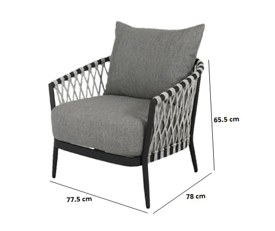 fauteuil extérieur en cordage palm spring structure anthracite matt avec coussin sunproof southend 161 gris