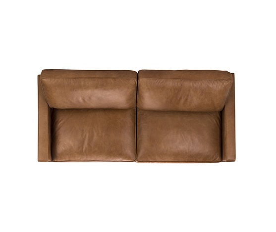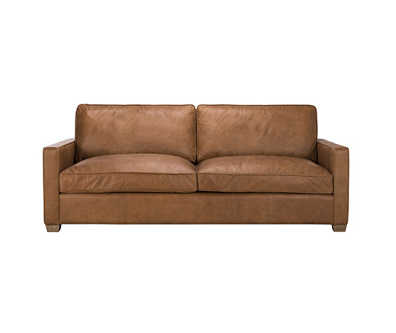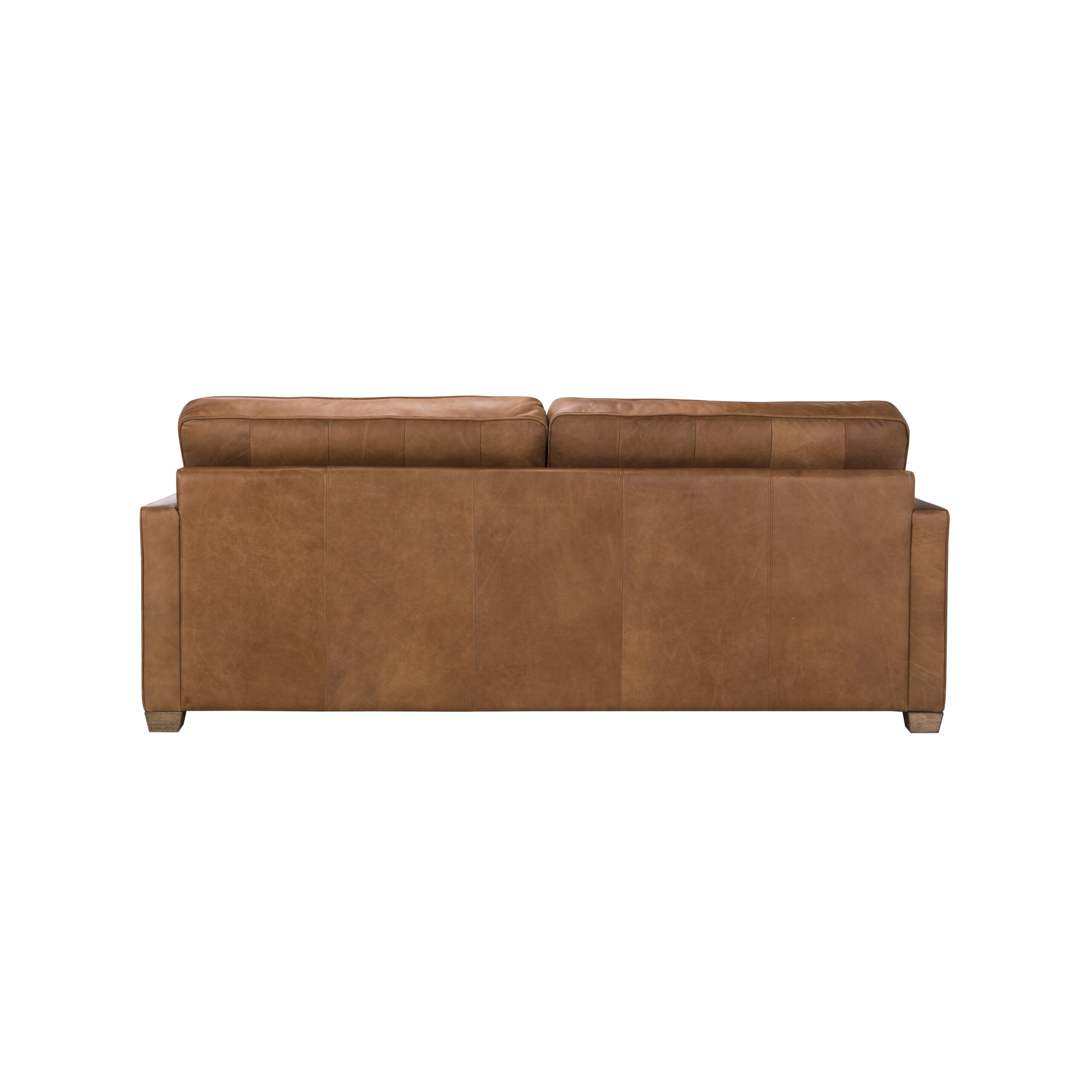 Canapé 3 places en cuir couleur camel avec une finition légèrement vintage.