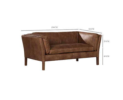 canape 2s whitehead en cuir nat-wash camel 151*70*83cm
