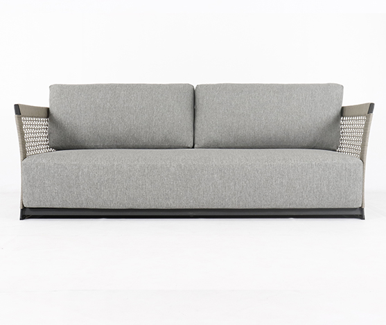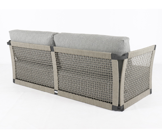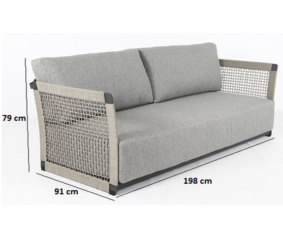 canapé fine 3 pl structure aluminium carbon en cordage 200x80x64cm, polyrope 6mm gris argent avec coussin hdf solaire southend 161 beige