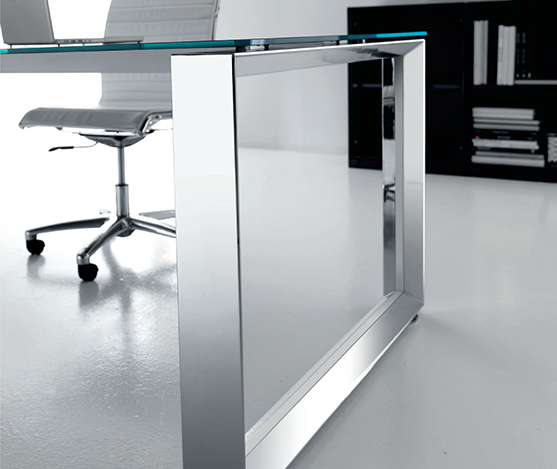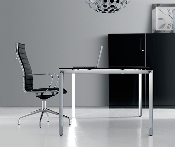 Bureau agora top verre noir, structure anneau chromé.