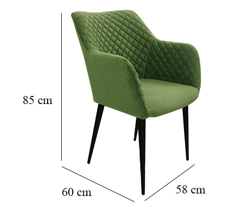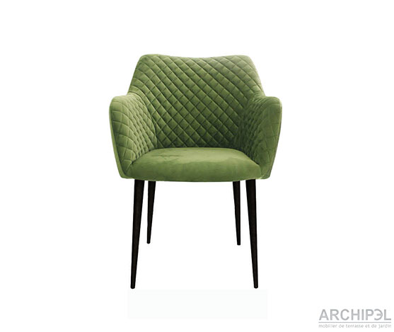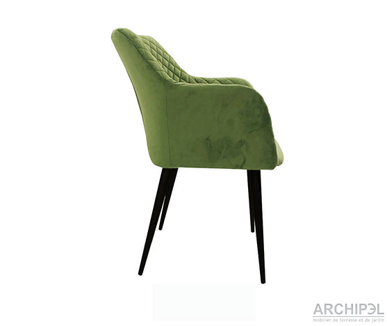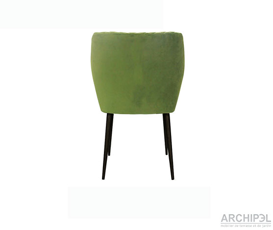 fr. : Chaise de salle à manger Sienna en velours avec dossier matelassé, structure et pieds en acier noir mat enduit de poudre. Cette chaise deviendra la pièce maître de votre espace de vie tout en apportant de l’élégance. en. : Sienna dining chair in velvet with quilted back, powder coated matt black steel structure and legs. This chair will become the masterpiece of your living space while adding elegance.