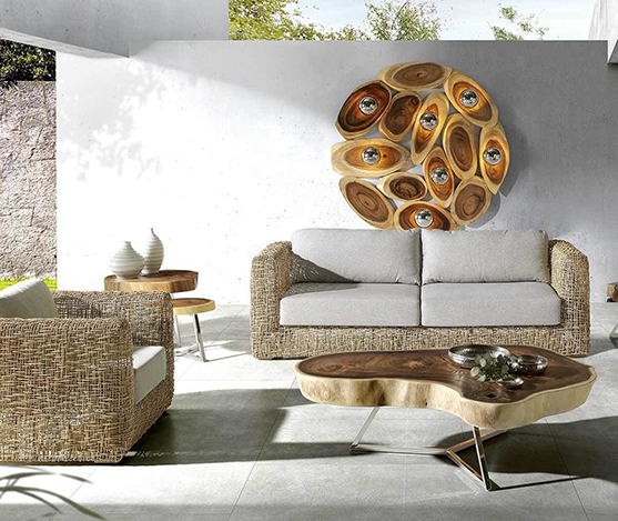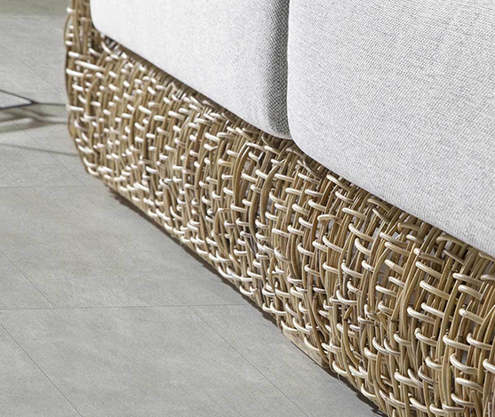 Canapé jungle en rotin naturel avec coussin.