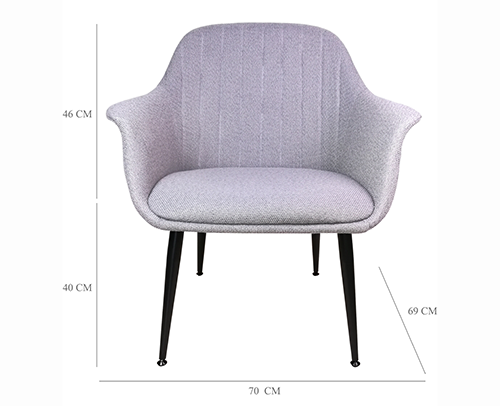 Fauteuil avec accoudoirs tissu gris clair pieds en métal noirs