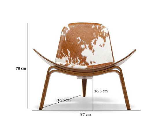 fauteuil en cuir de vache brun & blanc structure en bois de noyer de couleur claire