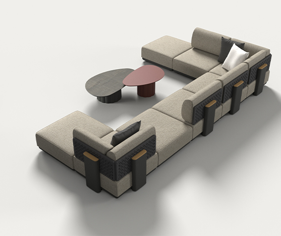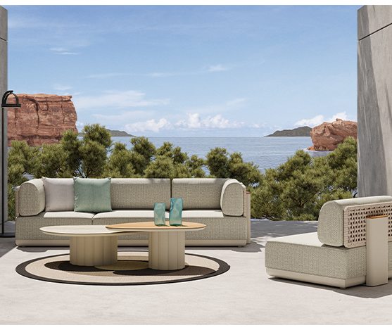 table basse lotus 120X71.5X35cm, base sand, top ceramic travertino romano