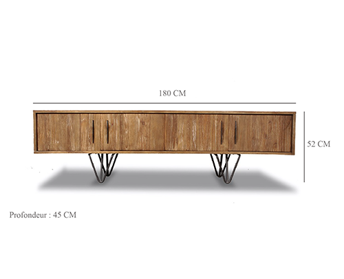 table tv en bois rustic sur pieds metal noirs avec 4 portes en bois dim 180x45xh52cm
