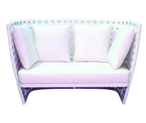 Canapé en rotin synthétique blanc.