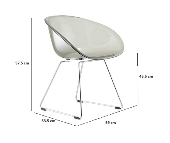 chaise en polycarbonate fumée sur luge aluminium chromée
