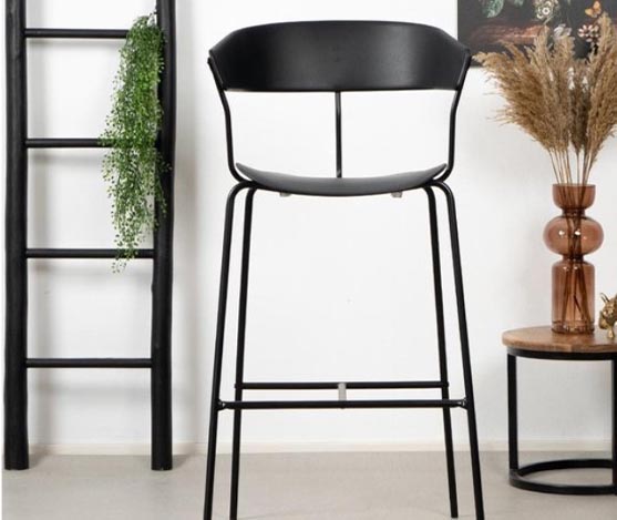 tabouret h75 métallique noir sur pieds avec assise en polypropylène