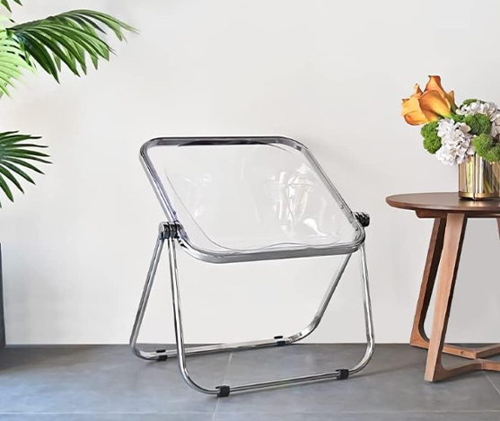 chaise en polycarbonate fumée pliable sur luge aluminium chromée