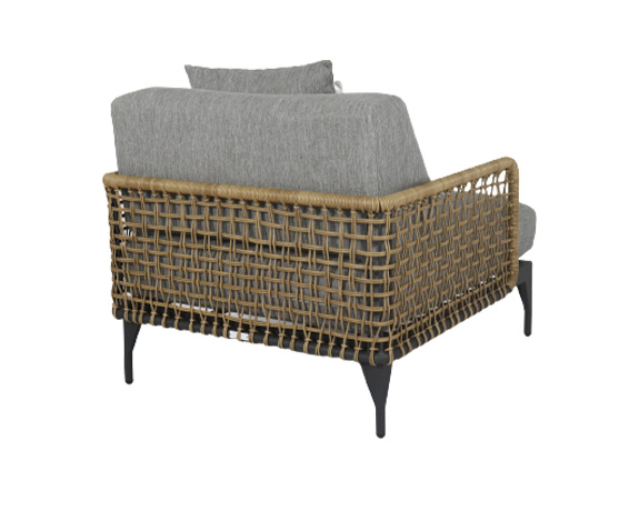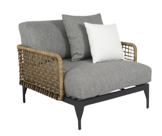 fauteuil en cordage polyrod naturel, structure carbone, coussins & oreillet sunproof southend 161 gris avec 1 oreillet southend 130 blanc