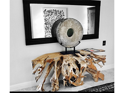 Console en racine teck, provenant d’Indonésie. Chacune pièce est unique, disponible en différents dimensions.