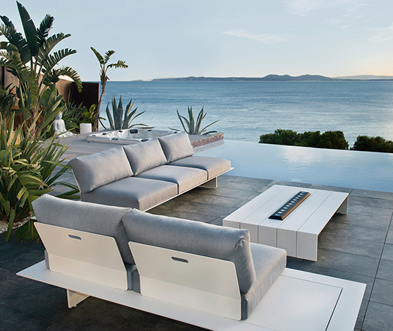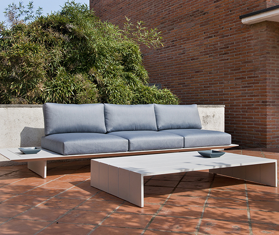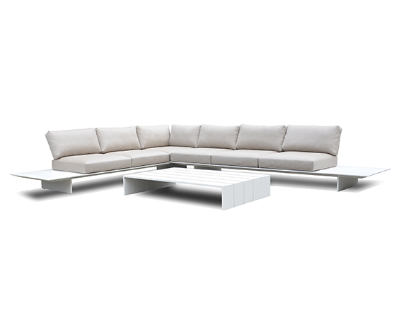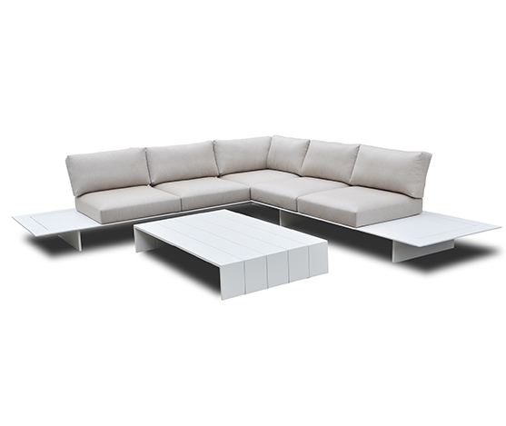 Salon de coin 6 places structure en aluminium blanc coussin agora gris clair.