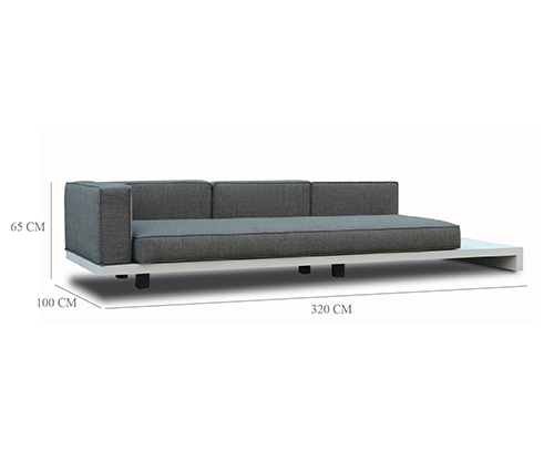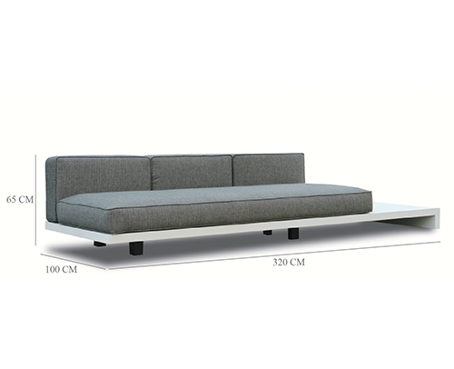 Salon d’angle complet en aluminium blanc. Offre de la place pour 5 à 6 personnes.
