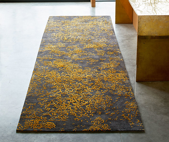 Tapis blossom en viscose et laine couleur titanium gris et gold.