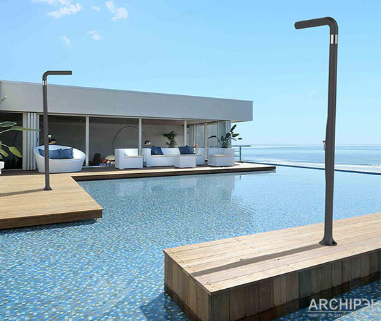 fr. : Douche Traditionnelle Funny Yang en couleur anthracite avec mitigeur. La Douche Arkema Funny Yang est une Douche d’extérieur et d’intérieur en polyéthylène HD résistant au rayons UV, au sel et au calcaire qui peut être utilisé également en milieux marins. Douche classique avec double entrée : Eau Froid ; Eau Chaude 2×1/2, non salaire, production italienne de Akrema Desing. en. : Traditional shower Arkema Funny Yang with mixer and with double connection for hot and cold water. Shower Arkema Funny Yang T205 Shower in UV and Salt water resistant HD Polyethylene suitable for use at the beach and in general marine and windy environments, resistant Indoor and Outdoor Shower suitable for every location. Traditional Shower Funny Yang T205 MADE IN ITALY by ARKEMA Design.