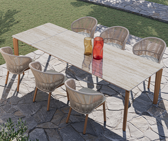 table de repas rectangulaire ambiance en aluminium avec plateau en pierre frittée ivoire