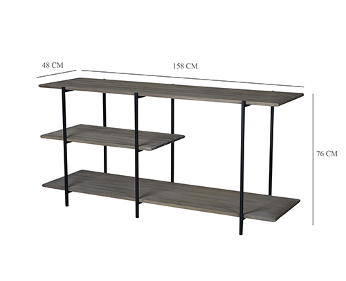 tonga/ console panneaux en bois, structure en acier laqué époxy noir dim 158*48*h76cm