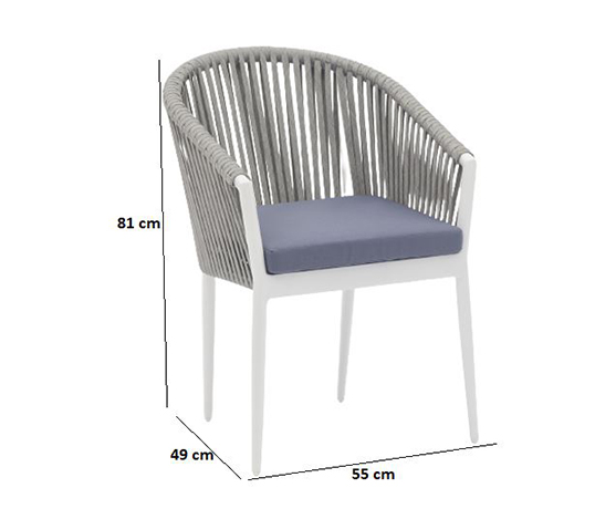 jasmine fauteuil en cordage alu blanc, rope gris et coussin assise gris foncé