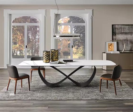 table a plateau fixe: stratifié en verre trempé ep.10 mm avec céramique patagonia lappato de 6mm (fmg-003); cadre en métal bronzé